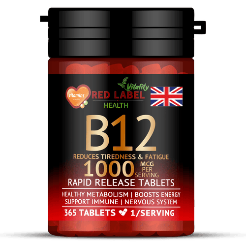Vitamin B12 1000mcg Vegan Tablets – 365 Methylcobalamin, 1-Year Supply – Energy & Immunity Support